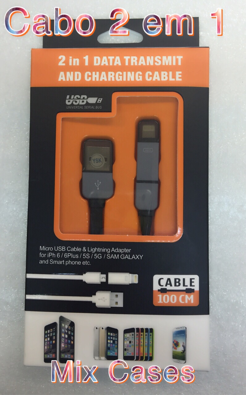 Cabo USB Blindado 2in1 micro Usb/ Lightning