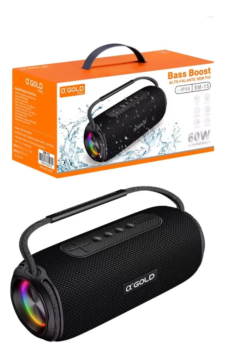 Caixa de Som Bluetooth Alfa Gold Bass Boost SM-15 60w
