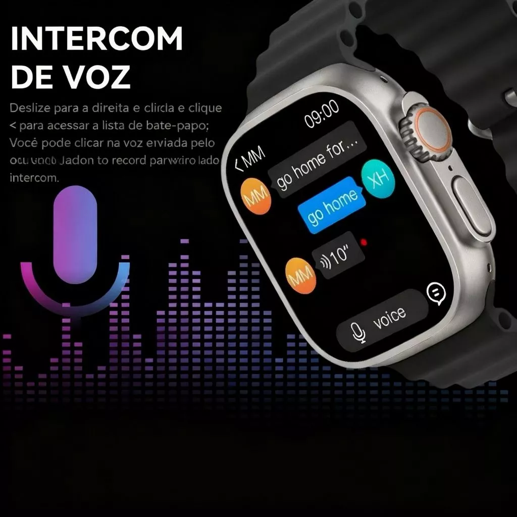 Além disso, é à prova d'água e respirável, ideal para entusiastas de esportes aquáticos e mergulho. Com a função de intercom de voz, você pode trocar mensagens de voz de forma prática. O pacote inclui diversos pulseiras e carregamento sem fio, garantindo praticidade e versatilidade.