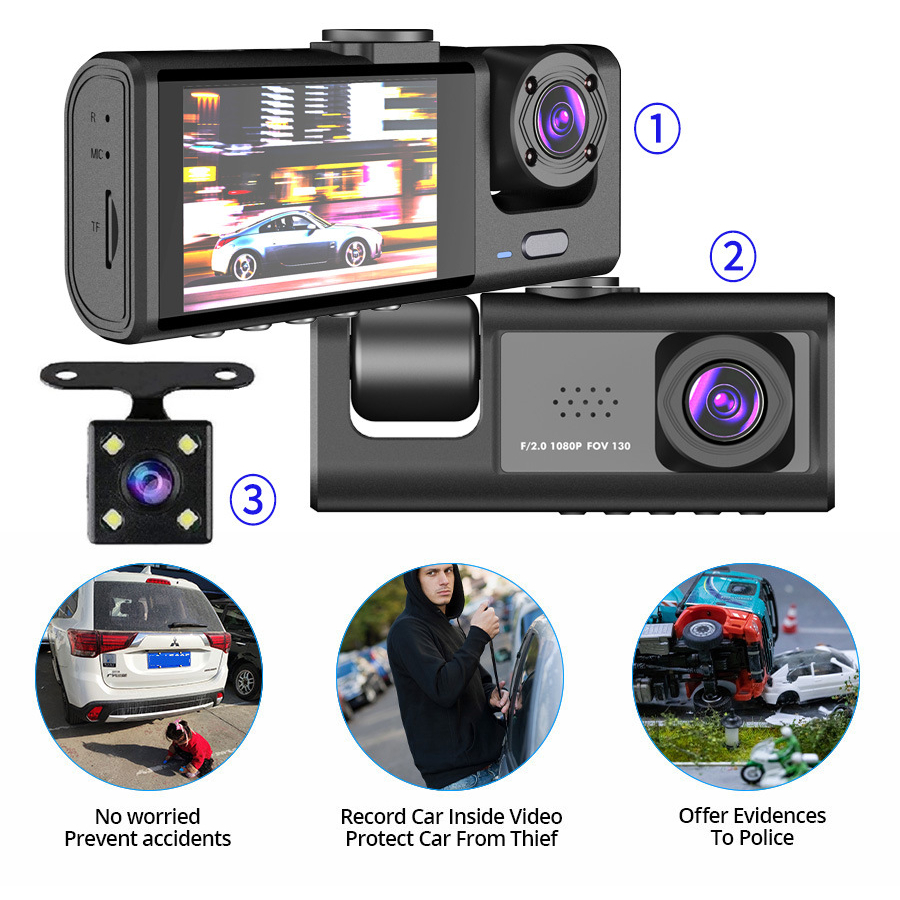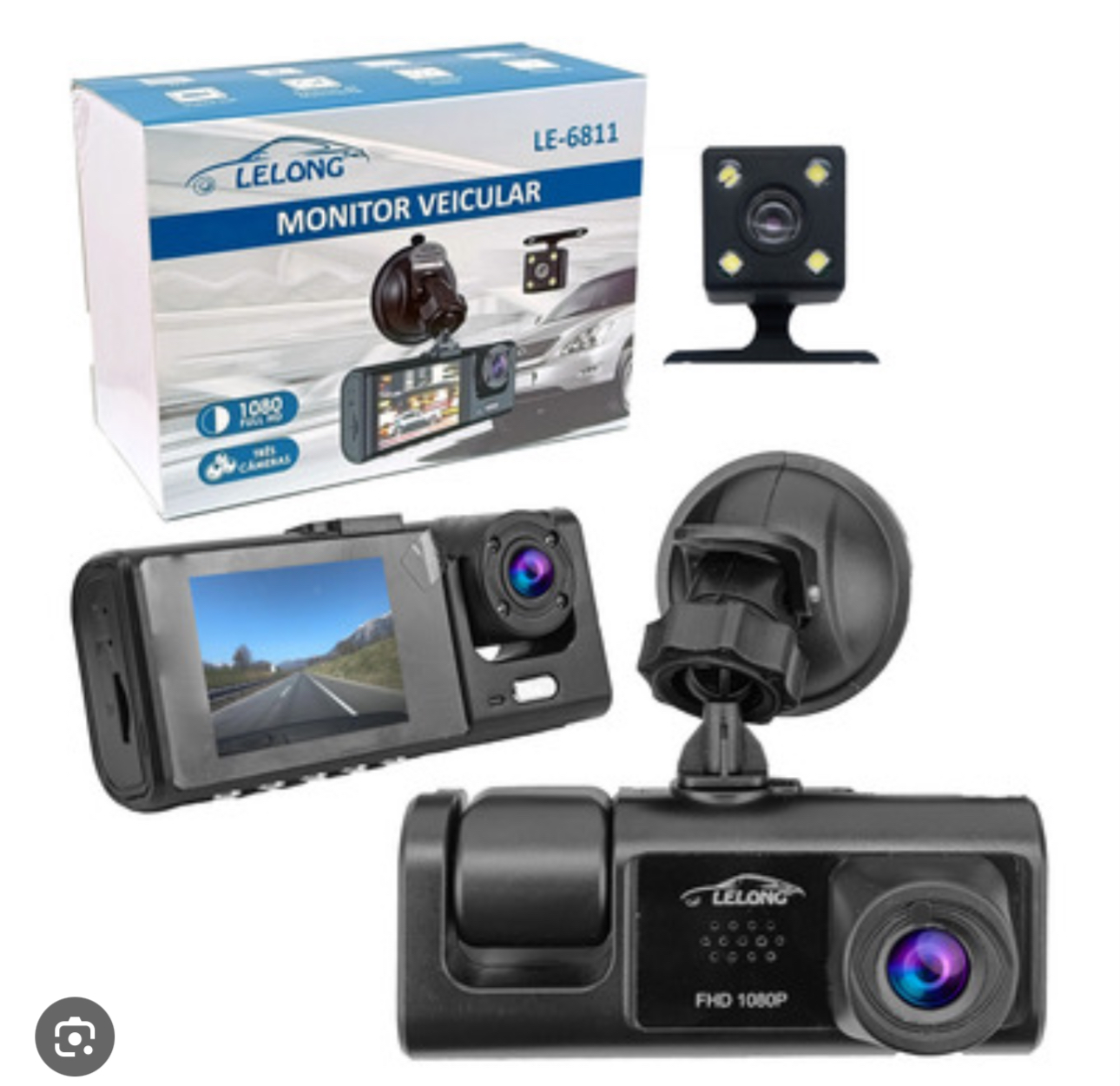 Câmera veicular microfone 3 lentes full Hd LÊ 6811