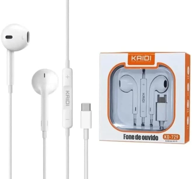Fone De Ouvido Com Microfone Kaidi Kd-729 In-ear Branco entrada tipo c android