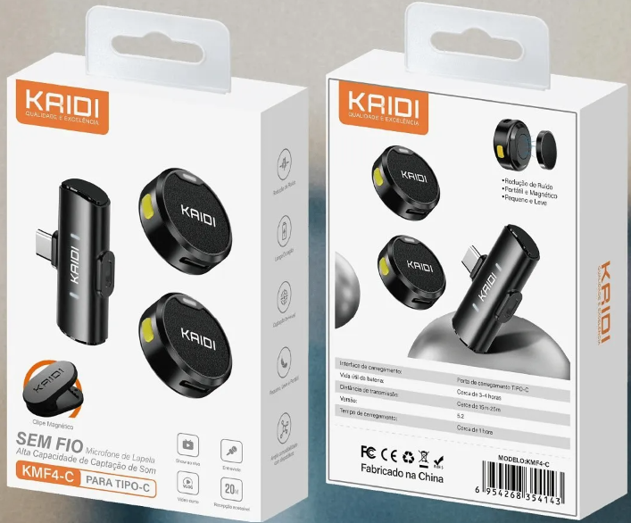 MICROFONE DE LAPELA SEM FIO KAIDI KMF4-C