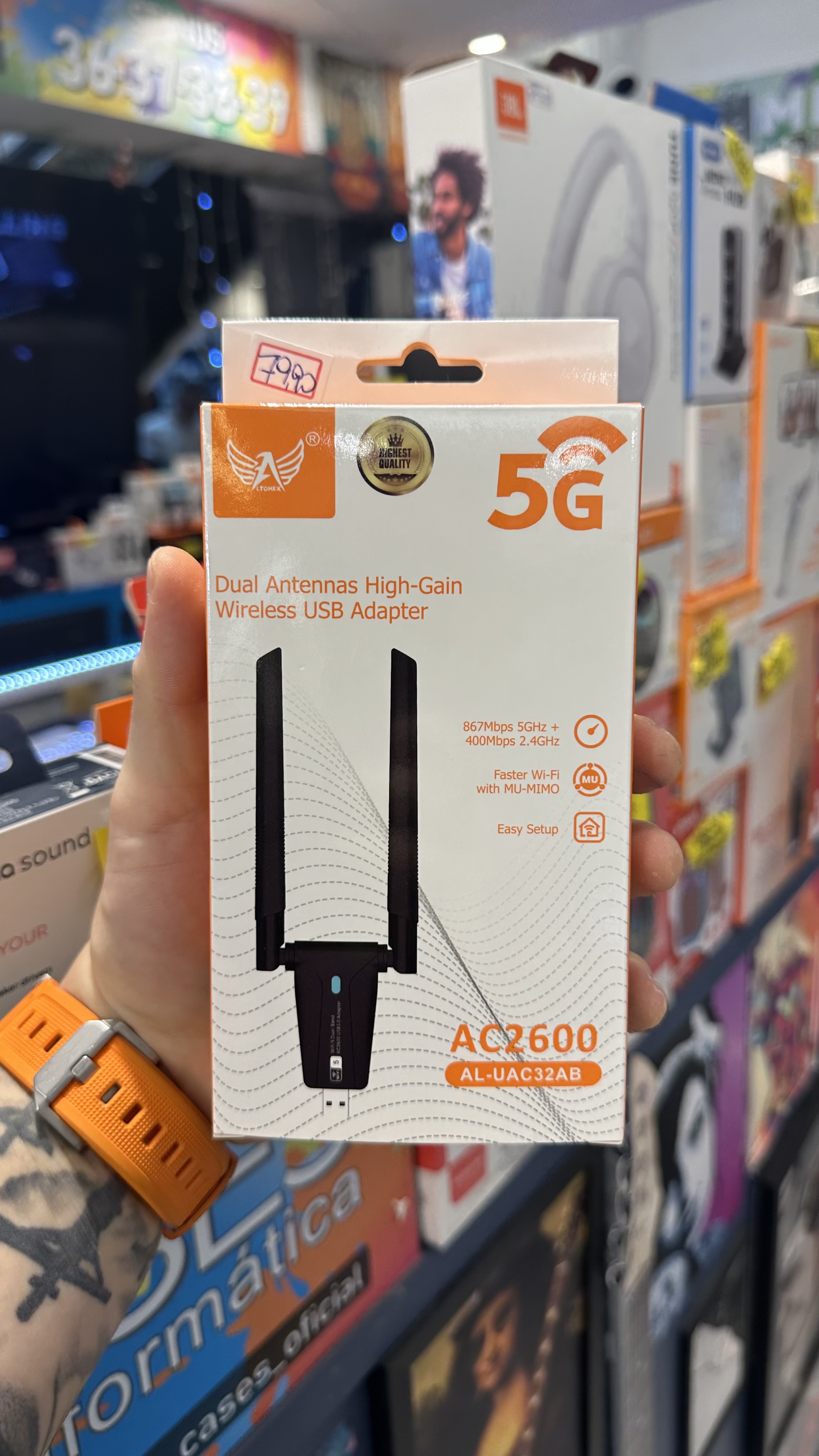 ADAPTADOR WIFI USB COM ANTENA 1800 MBPS