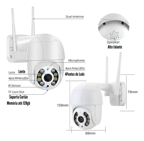 Camera Segurança Wifi 360 Graus Prova D'água C/ALARME