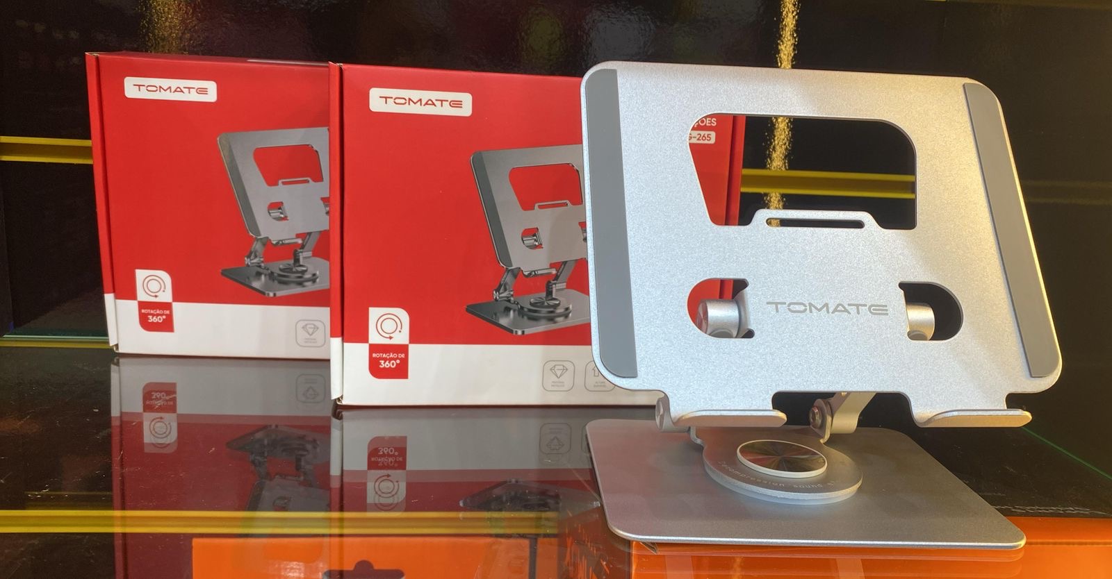 Suporte metal giratória mesa Tablet ou celular tomate.