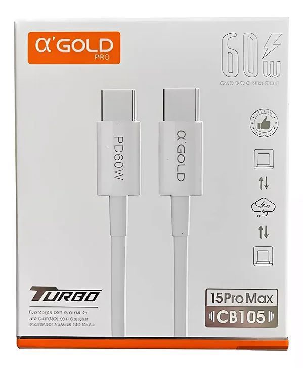 Cabo usb C para C turbo 60W. 1M Gold CB105