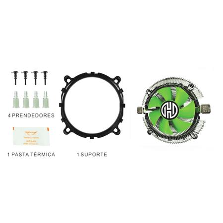 Cooler com Dissipador de 120 x 120 x 60mm, Rolamento Hydro bearing, Ventoinha: 12VDC 90 x 90x 25mm, Rotação: 2200 RPM (+ / -10%), Ruido: 20 dB(A) (Max.), Fluxo de ar: 48 CFM, Conector:3-pin. Compatível com: Processadores Intel LGA 775, 1155, 1156, 1150 e Processadores AMD 754, FM1, FM2, AM2, AM2+, AM#, AM3+ com TDP até 75W.