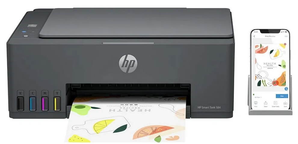 A Multifuncional HP Smart Tank 584 jato de tinta térmico imprime, cópia e digitaliza, possui velocidade de impressão de até 12ppm em preto A4, bandeja de entrada para 100 folhas e de saída para 30 folhas. Com conexão USB 2.0, Wi-Fi e Wi-Fi Direct. Compatível com Windows e Mac, processador com velocidade de 980MHz e memória de 64 MB. A HP Smart Tank 584 é ideal para uso residencial ou em pequenos escritórios. VOLTAGEM: 100-240V.