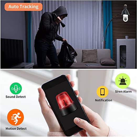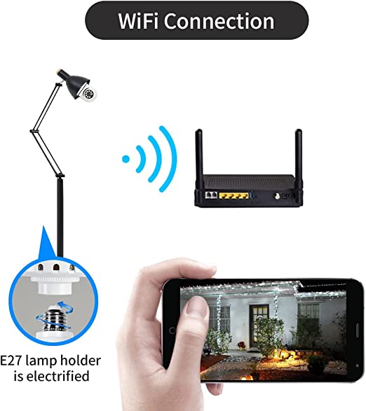Câmera de Segurança WiFi, 1080P Câmera de Base E27 com Visão Noturna Infravermelha intercomunicador bidirecional, Camera Vigilancia para Celular Android / IOS Controle Remoto por APP