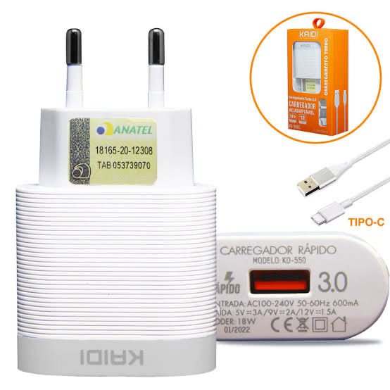 Kit carregador cabo / Tomada C p/ iPhone 20W turbo kaidi