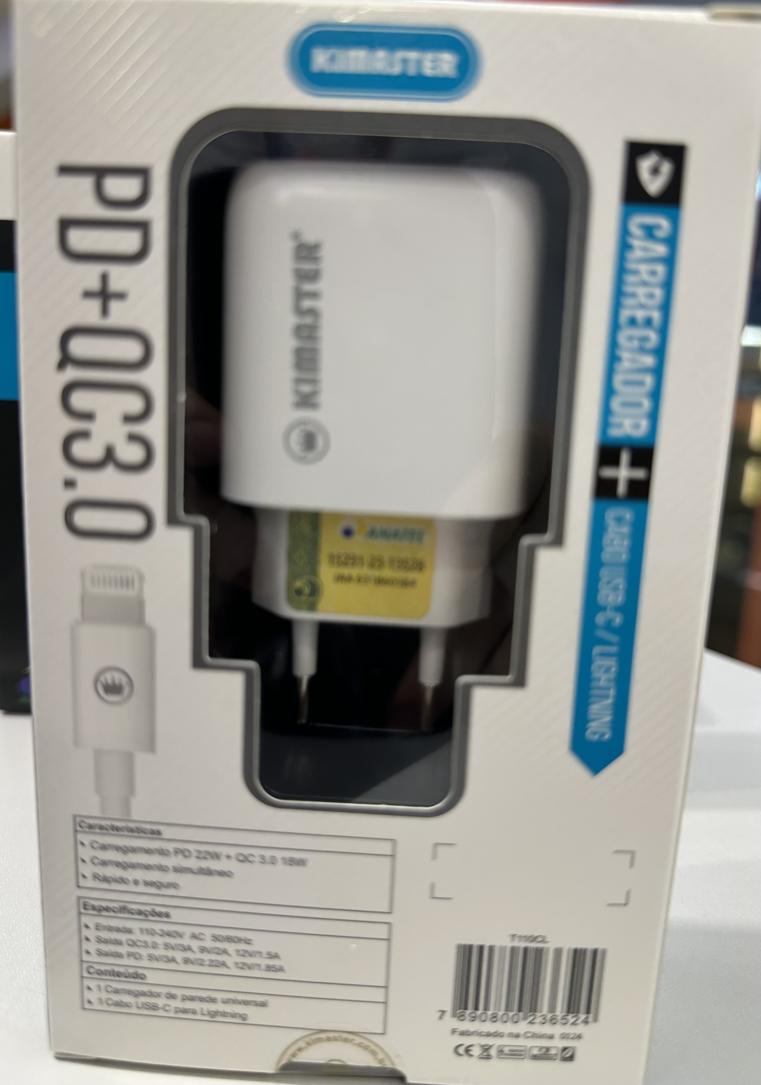 Carregador Turbo Typ C /Usb Kimaster 40W IPhone 13/14/15